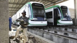 Commuters rise above the traffic on Sub-Saharan Africa’s first metro railway